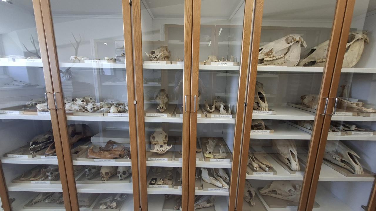 Darüber hinaus umfasst die Sammlung Vergleichsmaterial von Fischen, Vögeln, Amphibien und Reptilien. Neben den alltäglichen Referenzstücken finden sich auch einige besonders beeindruckende Exemplare, etwa Knochen von Auerochsen, einem Bison oder sogar einem Höhlenbären.